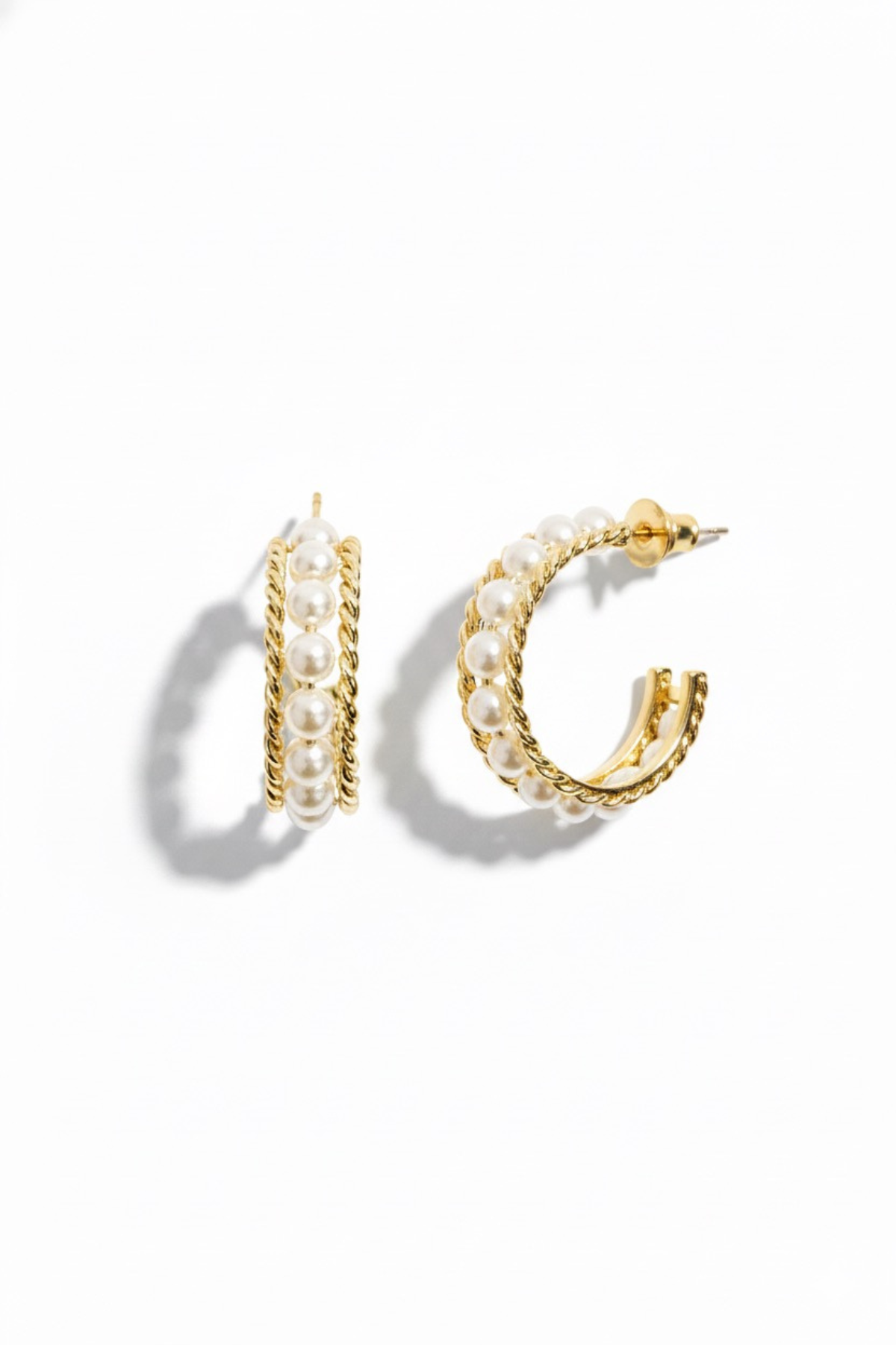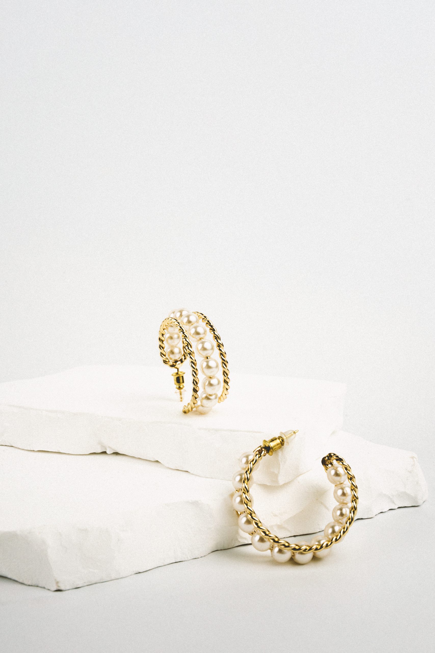 Les boucles d’oreilles Rodin célèbrent la force délicate du style créole. Avec leurs 4 cm, ces créoles dorées en matière fantaisie sont entièrement serties de perles écrues, offrant un équilibre subtil entre modernité et tradition.