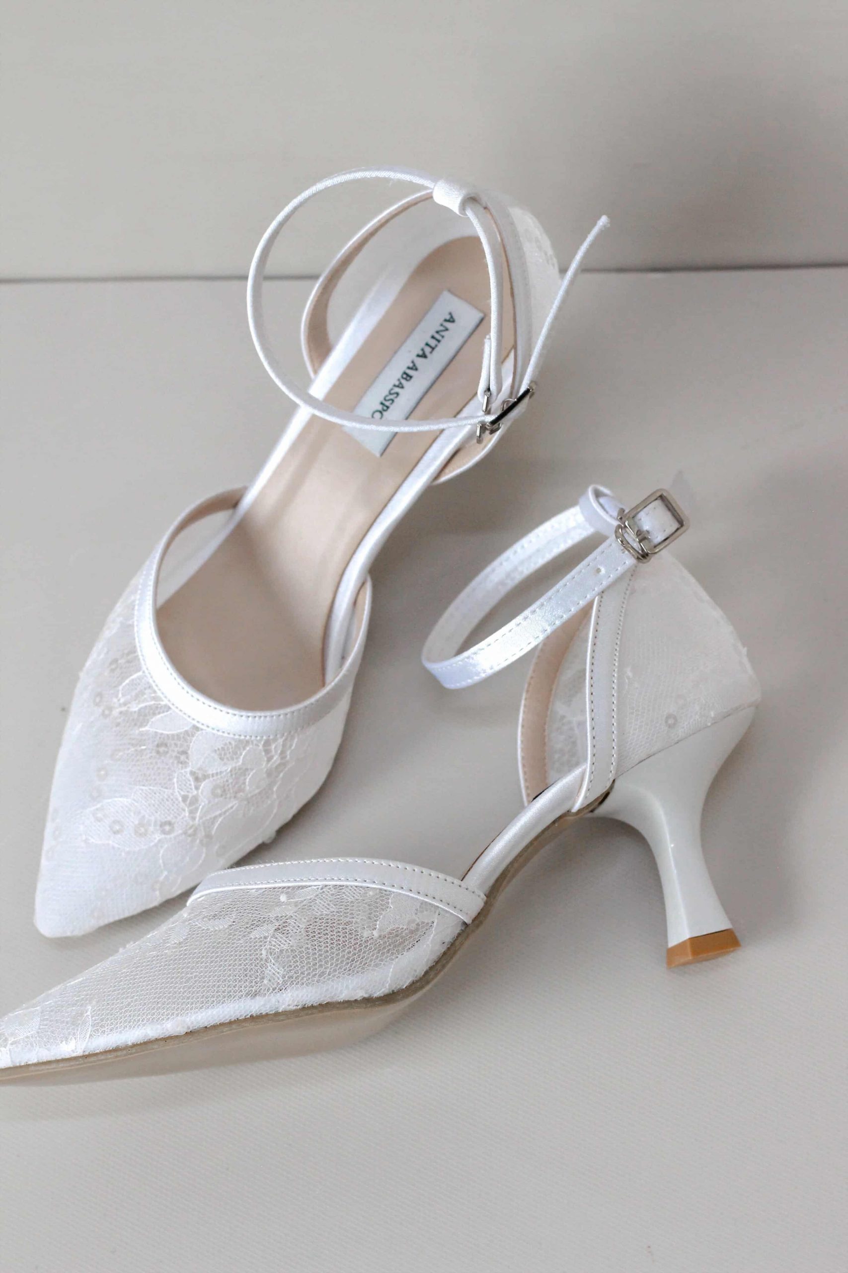 Les escarpins FRANCE incarnent l’excellence artisanale et l’élégance intemporelle. Confectionnés en dentelle française, ils subliment chaque mariée grâce à une silhouette raffinée, un confort étudié et des talons disponibles en plusieurs hauteurs.