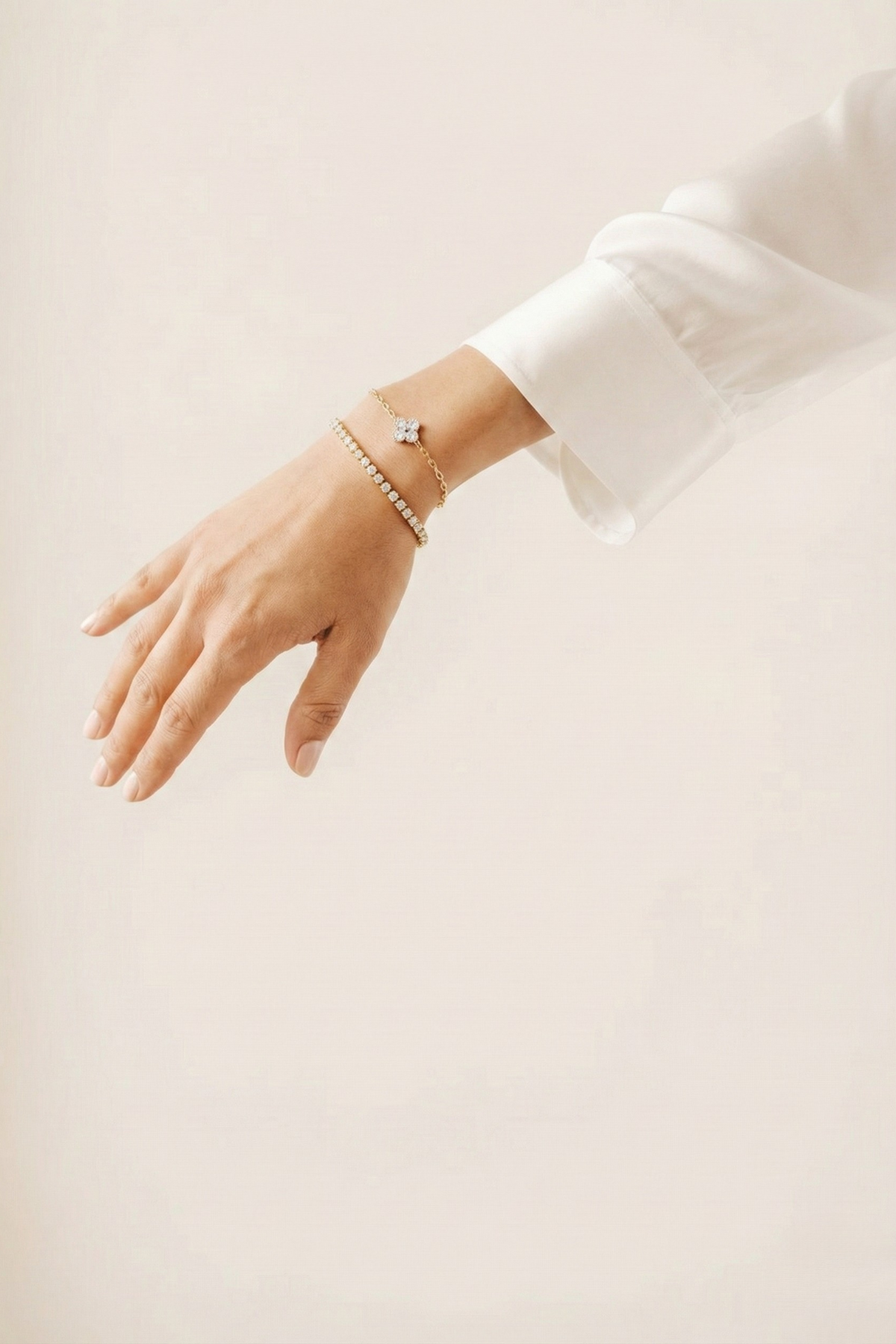 Portés ensemble pour un effet superposé moderne, ils subliment une tenue nuptiale en apportant une touche de romantisme contemporain. Légers, élégants et ajustables, ils complètent parfaitement une robe bustier ou un look épuré, révélant toute la finesse du poignet.